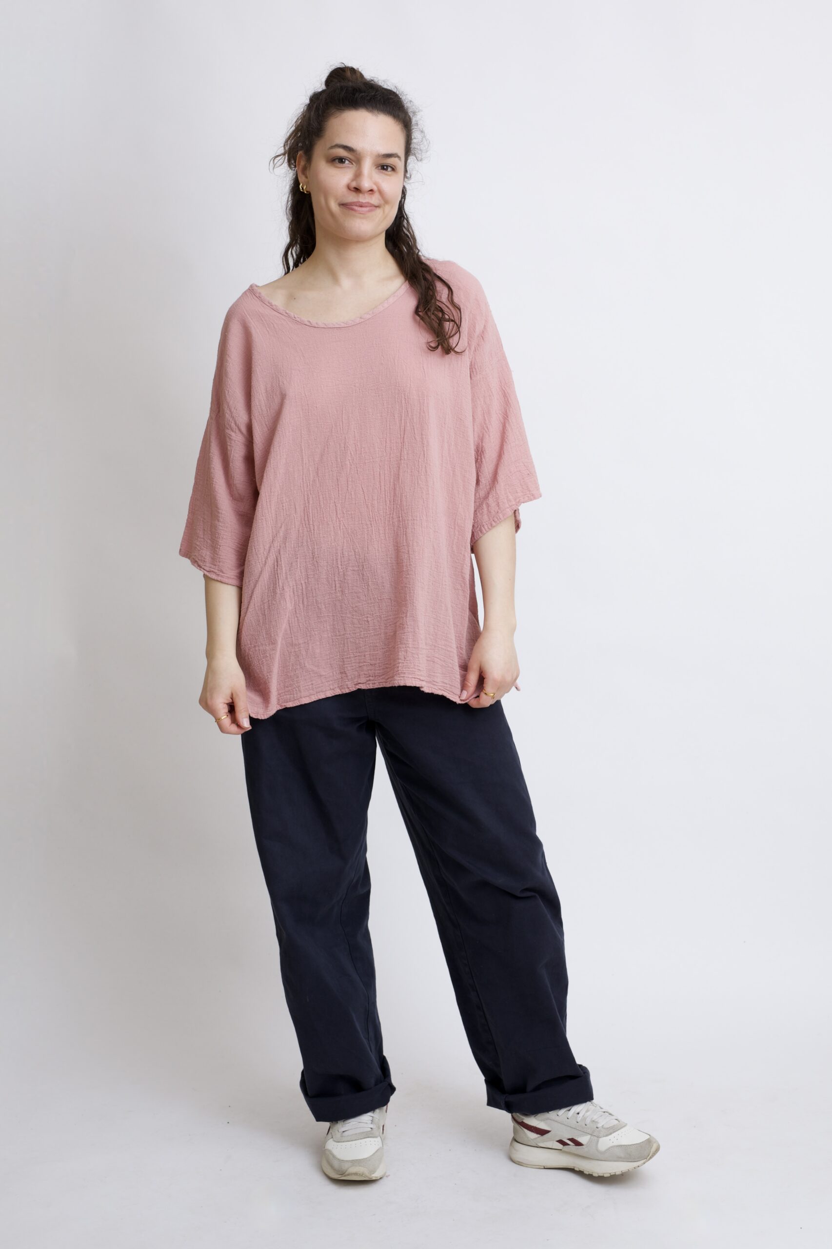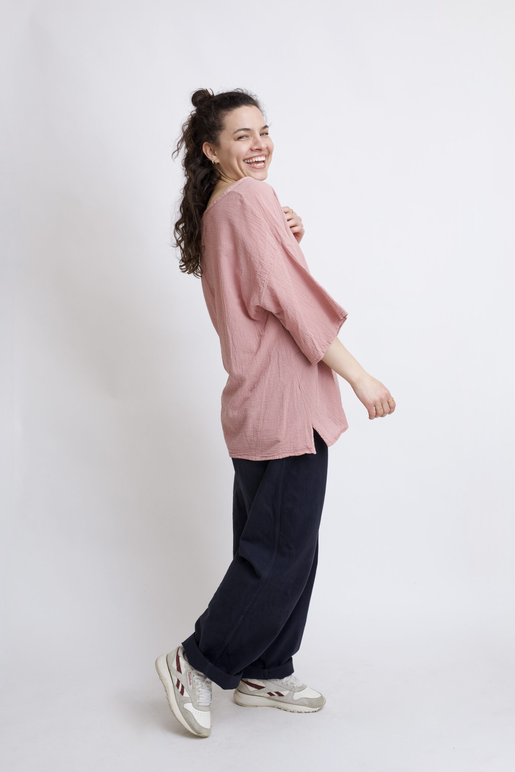 Damska bluzka z czystej, miłej w dotyku bawełny organicznej. Vera to luźna bluzka oversize, typu nietoperz – z szerokim, przedłużonym rękawkiem. Szeroki fason gwarantuje swobodę ruchu i komfort codziennego użytku. Prosty i uniwersalny krój sprawia, że pasuje do wielu zestawień na co dzień. Bluzka w kolorze róż – pudrowy.
