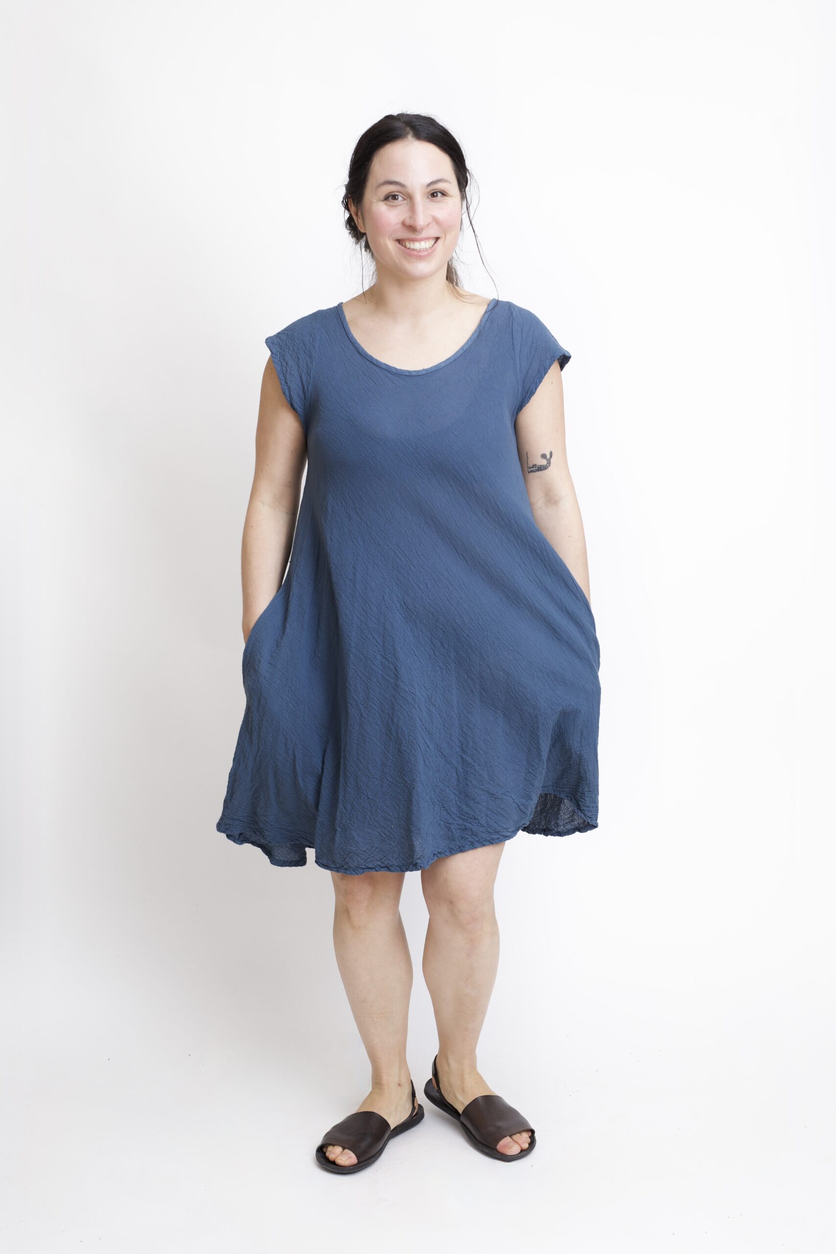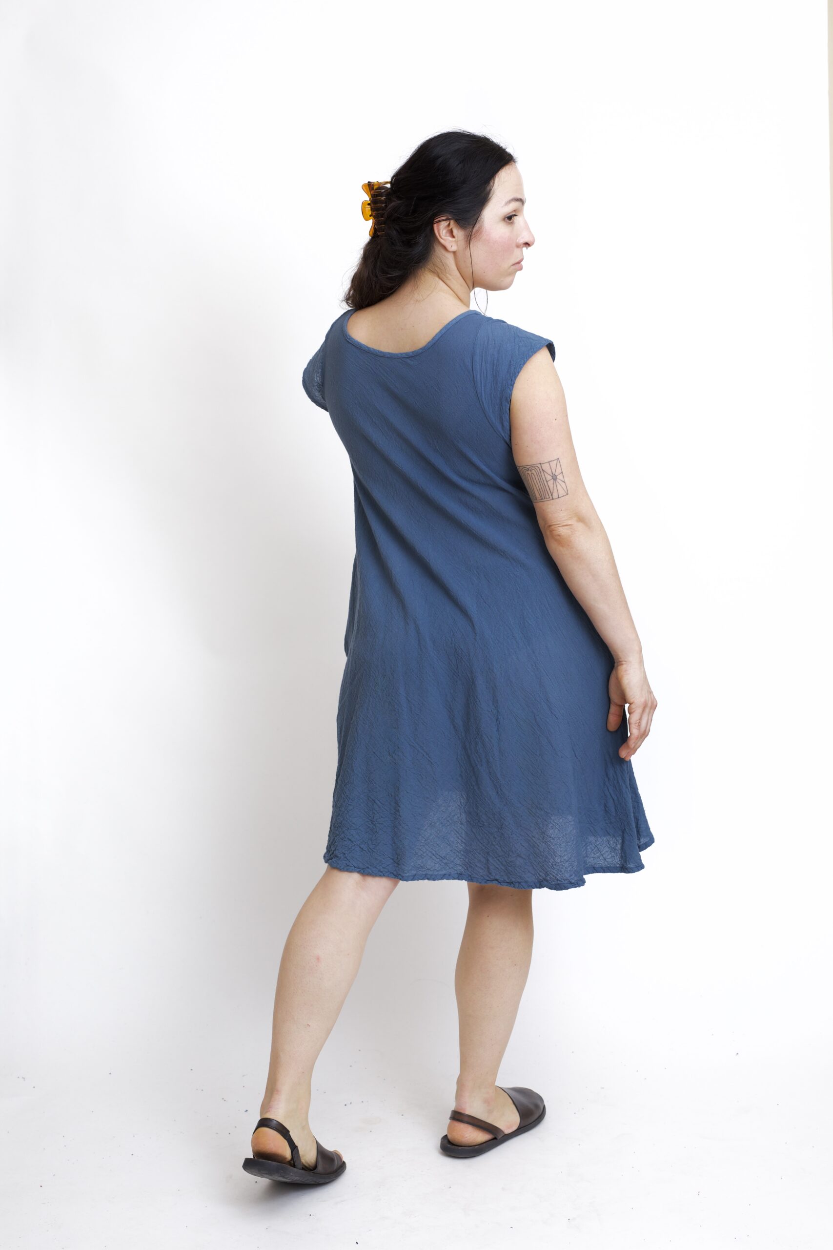 Bawełniana sukienka mini z czystej bawełny z charakterystycznymi „skrzydełkami” na ramionach. Sukienka, która zapewnia przewiewność i komfort noszenia przez cały dzień. Luźny krój, rozszerzający się ku dołowi, pięknie układa się na sylwetce i nie krępuje ruchów. Uniwersalny model z kieszeniami sprawdzi się zarówno w codziennych, jak i letnich stylizacjach. Sukienka w kolorze szaro-grafitowym.