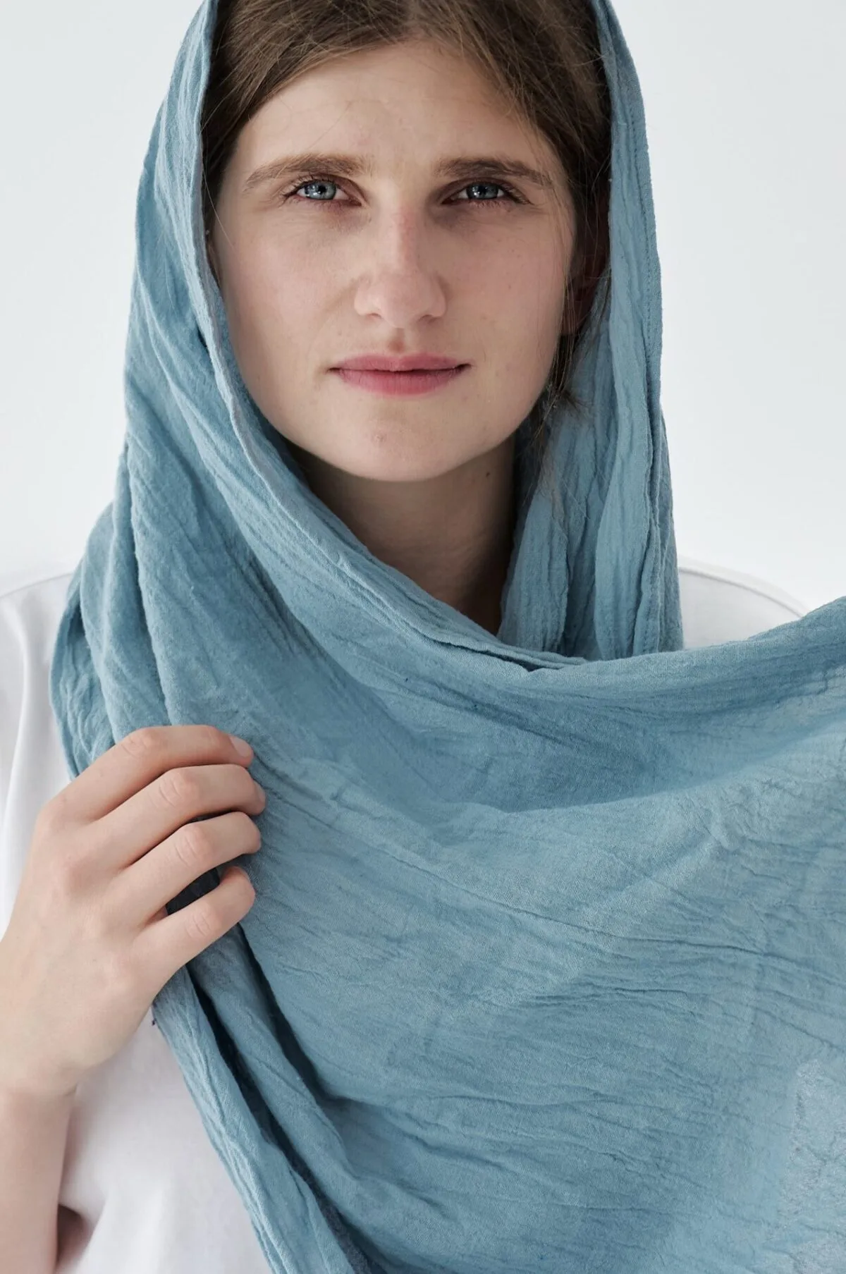 Szal popielato szary wyróżnia się chłodnym odcieniem szarości przełamanym błękitną nutą. Kolor wygląda czysto i świeżo, a jednocześnie pozostaje neutralny. Dzięki temu łatwo dopasowuje się do różnych ubrań i okazji. Popielaty ton nie dominuje, ale dodaje charakteru całej stylizacji. To praktyczny wybór, który sprawdzi się w każdej garderobie i podkreśli prosty, stonowany styl. Szal uszyty z delikatnej, kreszowanej bawełny. Wykończony ręcznie plecionymi frędzlami, pozwala poczuć luz i oryginalność w twoim stylu na co dzień.